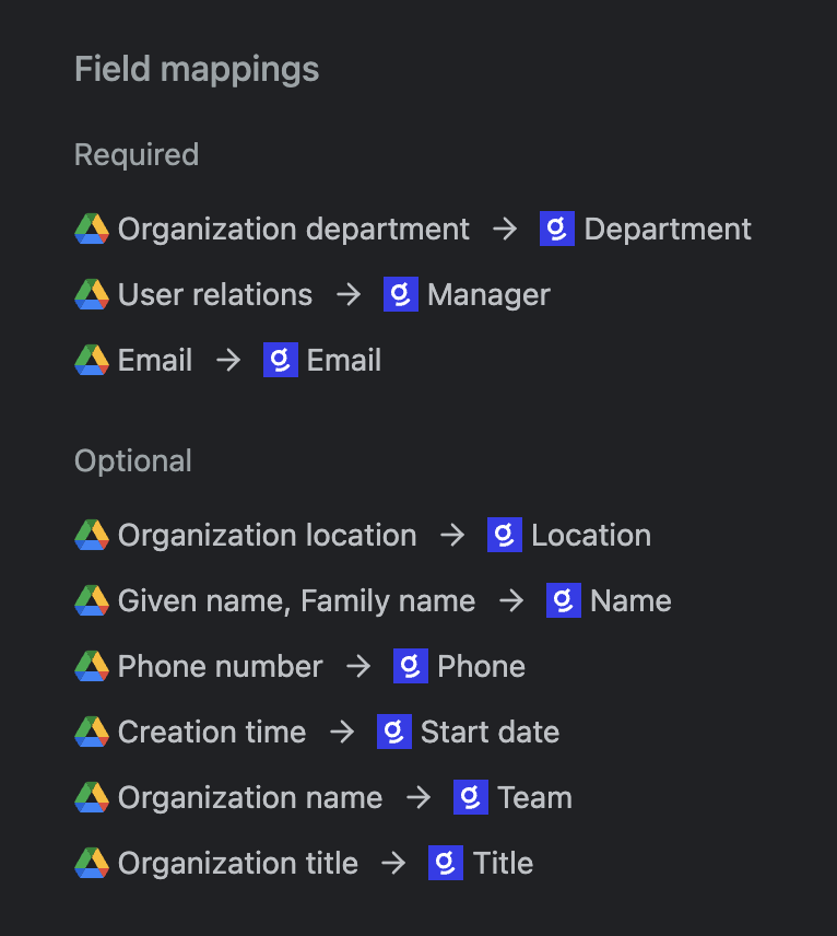 3. If the user has the required information in the source, then check the Super field mappings to confirm we are pulling the correct fields by selecting "Update data" in the "People data" tab. Here you will find the field mappings.